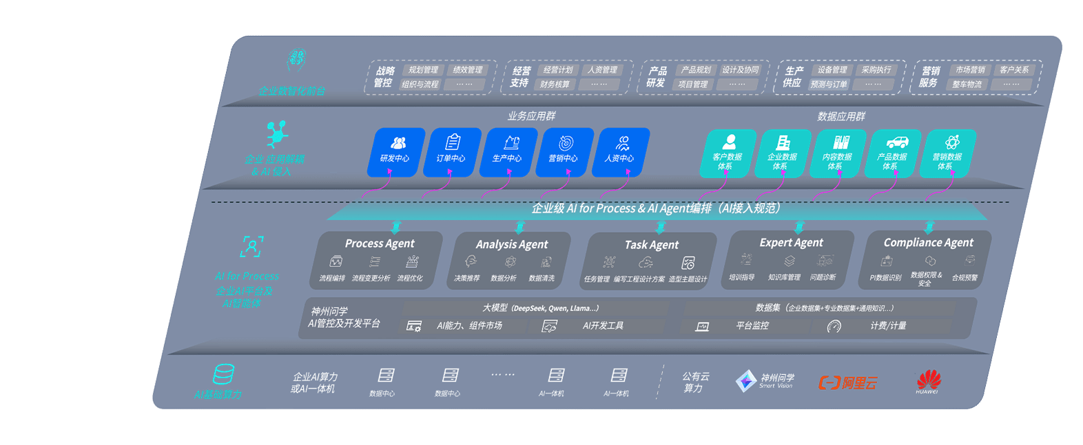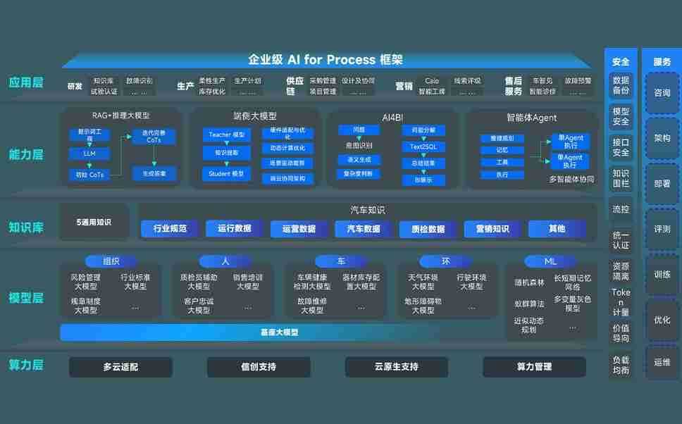 端到端的一站式AI工作空间深度融合了从企业战略规划到日常经营的全流程业务板块,,定向解决车企内部领域多、、、部门多、、、链条长、、、、场景碎片化等难题,,,,支持车企快速构建以AI为核心的生产力写作体系,,,,实现任务执行与AI能力的无缝集成与交互