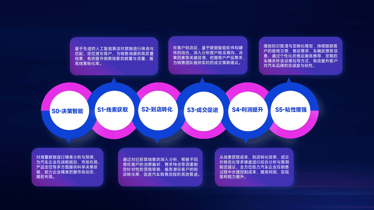 通过拓宽潜在客户来源、、优化线索分配并提高到店转化率,,,,以增强销售效率。。。。同时,,利用线索数据不断优化分析模型,,有效提升转化率,,扩大营销影响力。。。。